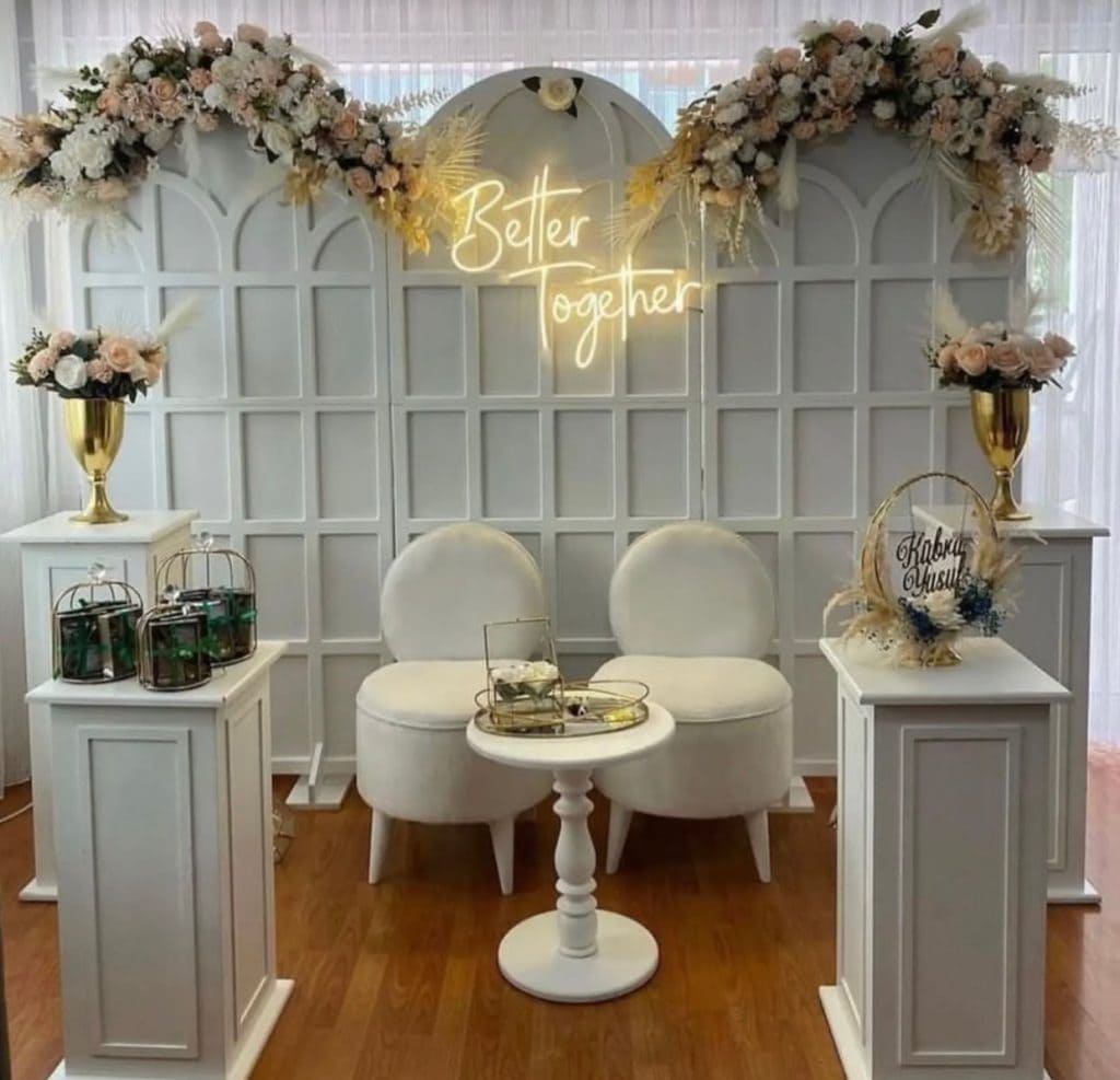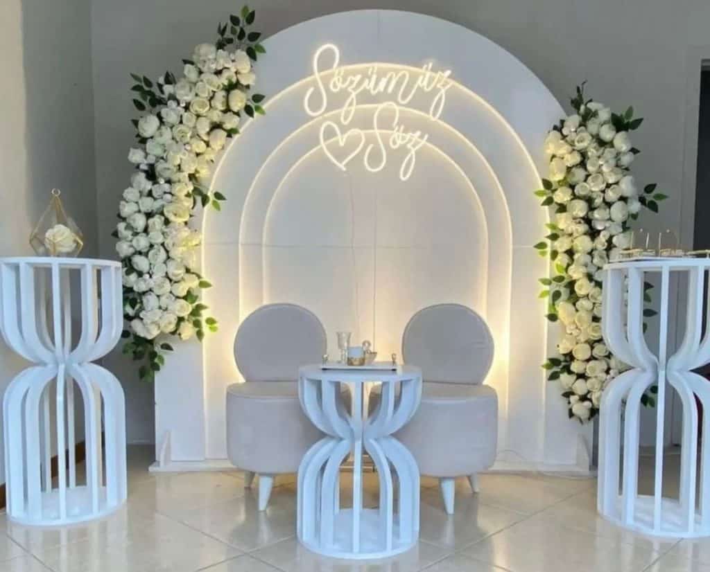 NİŞAN İÇİN ARKA FON PERDE ÖNEMİ , iş tamamen görsel bir şölen niteliğinde olmalıdır , piyasada Nişan Dekarasyonu adı altında bu gibi hizmet veren çok sayıda firma ve sosyal medyadan kişiler bulunmaktadır. Arka Işıklı Fon Perde’nin önemi , sadece kuru bir Nişan Masası Kiralama yapmanız gerçekten çok donuk bir organizasyon olacagının göstergesi olacaktır , Nişan Işıklı Perde’nin organizasyona dahil edilmesi emin olun tüm organizasyona iyi anlamda katkı sağlayacaktır. bir organizasyonun ilk amacı kesinlikle sıradan olmaması için çaba göstermektir , yapılacak süslemeler için her şey tek tek planlanmalı , eksik hiç bir malzeme olmamalıdır.
